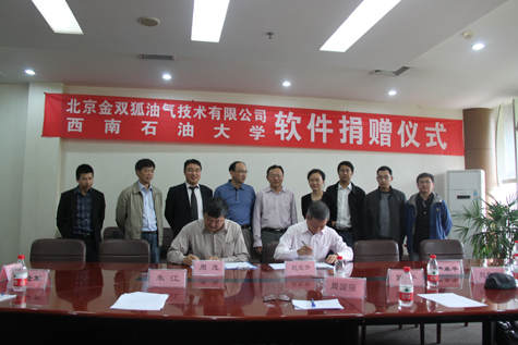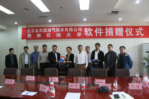 2014年4月16日上午,北京金双狐油气技术有限公司向西南石油大学捐赠双狐软件仪式在西南石油大学举行。金双狐公司总经理赵武升、副总经理周国强、西南石油大学相关领导出席了捐赠仪式。